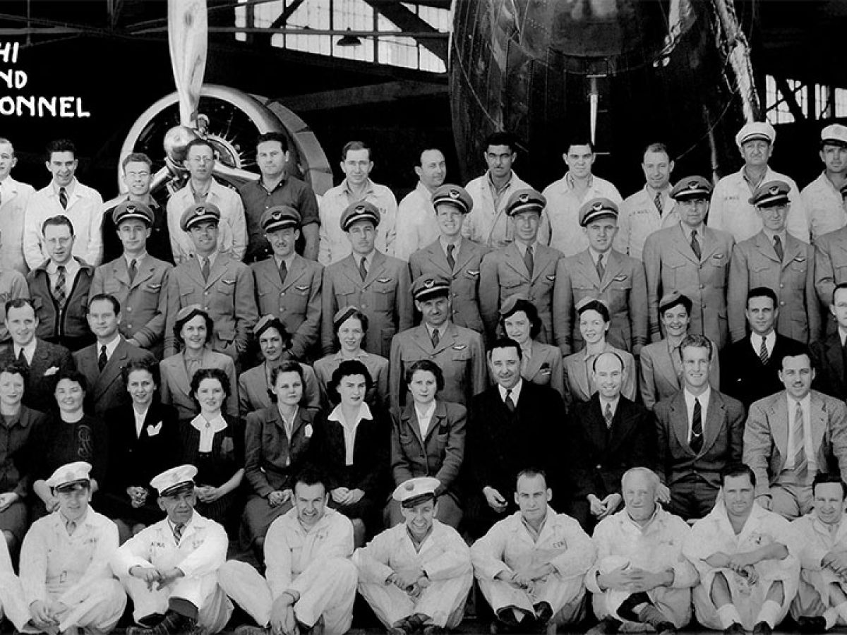 It was the early recovery years after the Great Depression when aviation legend Dee Howard first started working at age fifteen in automobile related shops. Within a few years, Dee was able to find a job in his chosen field working on aircraft when he became an apprentice for Braniff Airways. Dee later moved to California to work for Western Airlines (the photo above is of twenty year old Dee Howard standing in the back row, white coveralls, under the nose of the aircraft).