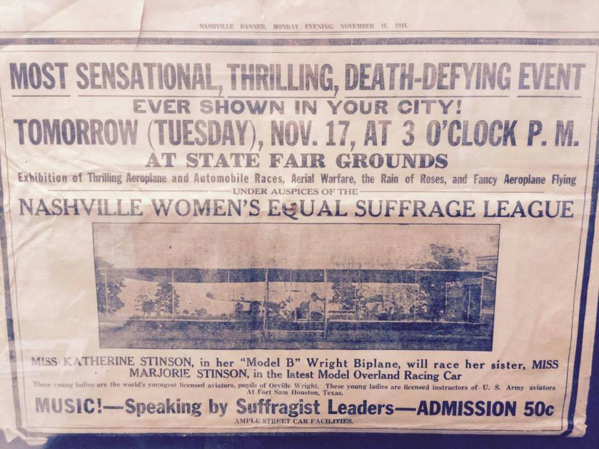 Oh those Stinson Girls. What did they get up to — airplane versus car race, Nashville, TN, 17 Nov 1914. Thanks to George Shotwell for sharing this with us.